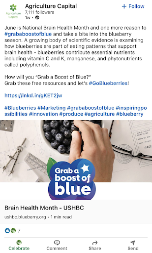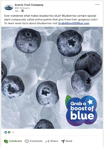 “We love to see the industry engage with Grab a Boost of Blue,” said USHBC/NABC Vice President of Marketing and Communications Jennifer Sparks. “Most recently, we’ve seen it used in captions on social media, the logo featured on brands’ original content to give consumers that final call to action, and, best yet, the logo on packaging in stores! All of these tactics build upon a collective industry effort that will resonate and stand out among the clutter.”